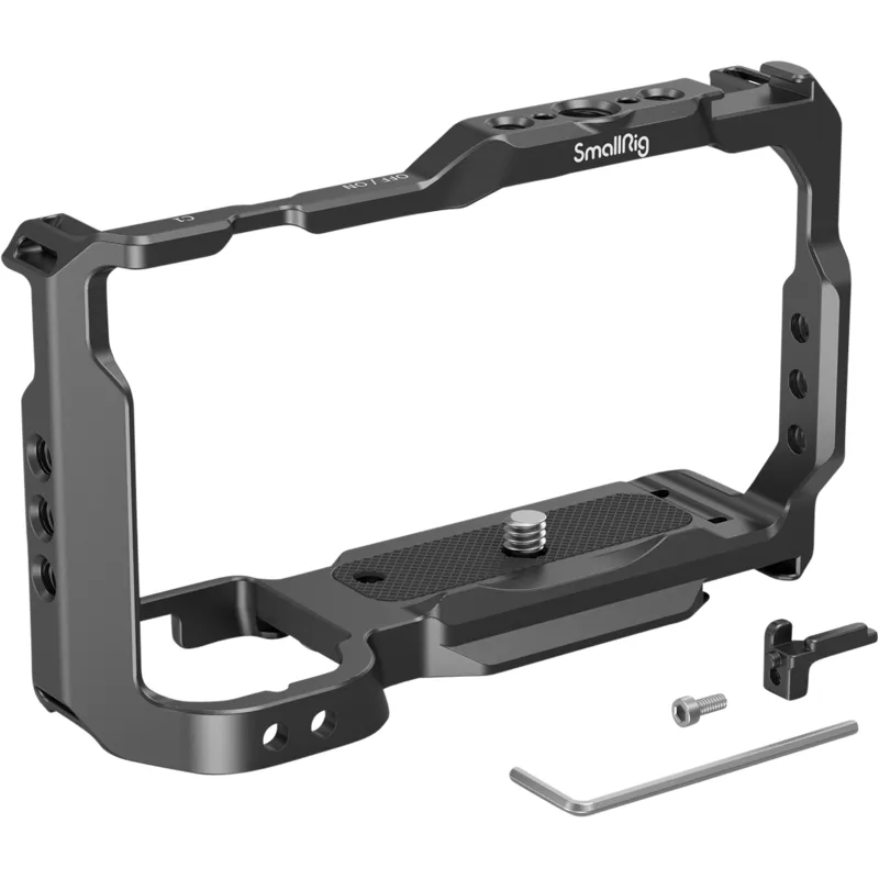 SMALLRIG 3531 CAGE FOR SONY ZV-E10 3531 The SmallRig Cage for Sony ZV E10 is designed to provide accessory mounts and protection. It maintains access to buttons, card slots, battery compartment, and flip screen.