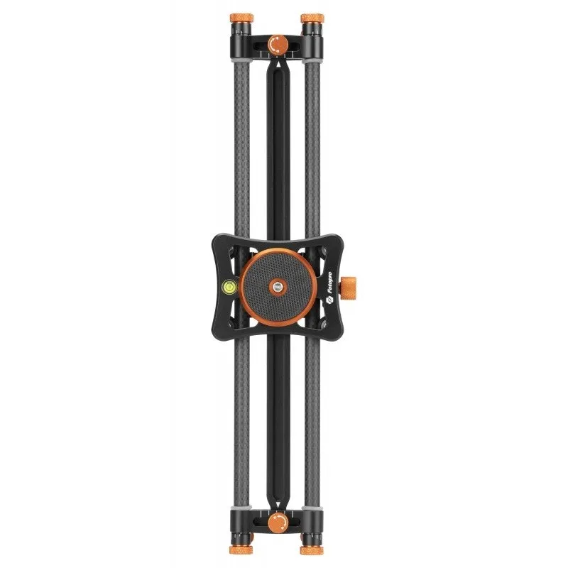 Fotopro HG-02 is a small bearing slider that will allow you to enrich your video footage with professional moving shots. The use of carbon fibre ensures the durability of the slides, as well as the lightness of the entire structure. The range of movement on the rail here is 223 mm. Adjustable leg length and tilt make it easy to adapt the slider to uneven ground.