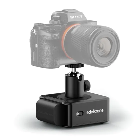 Intuitively adjust angles manually or effortlessly with the Edelkrone App. The new manual controls make your work unprecedentedly quick and easy, making the whole process much more intuitive. Use the Edelkrone App to control from your phone, watch, tablet or Mac (with M processor), or get a Mac/PC adapter to control from other Macs and PCs. In combination with other Edelkrone motion control devices (sliders, arms, etc.) you can easily create 3- or 4-axis camera movements. With Edelkrone motion control products you can create complicated trick shots, animated movies and other otherwise very difficult shots. The devices pair instantly to the background. Setting up time-lapse motion capture is a breeze with the Edelkrone app...