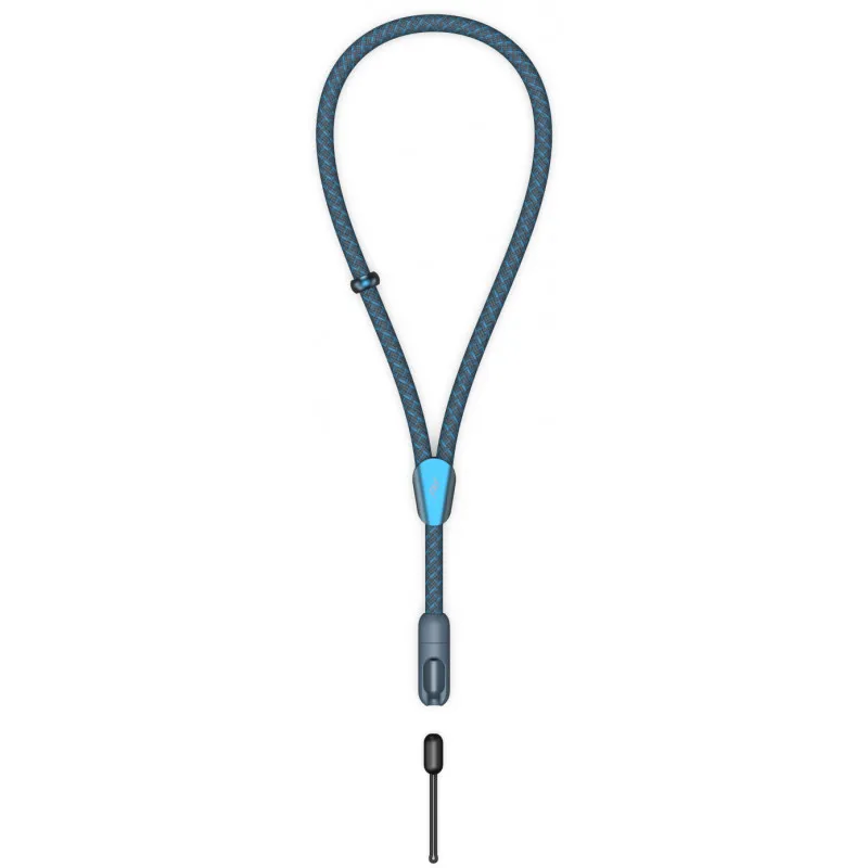 Специально разработанный плетеный нейлоново-полиэстеровый шнур обеспечивает оптимальный баланс прочности, амортизации и эластичности. В случае случайного падения ремень автоматически затягивается вокруг запястья, обеспечивая дополнительную безопасность. Элегантная система регулировки из стекловолокна и нейлона позволяет легко настраивать размер петли, в то время как алюминиевый стопор устанавливает минимальную длину петли.