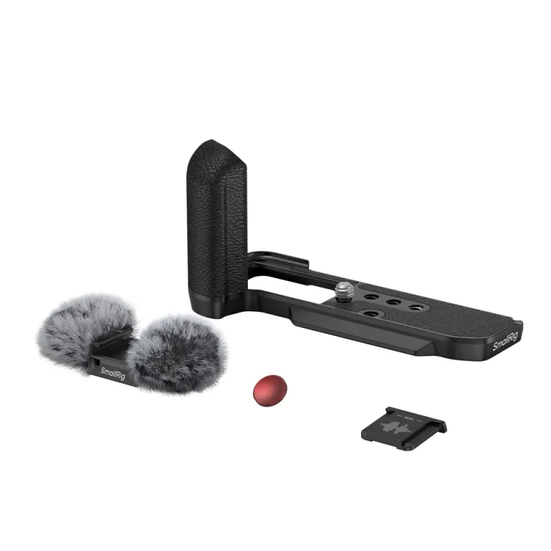 The SmallRig 4876 L Shape Mount Plate with Silicone Handle for FUJIFILM X M5 (Black) is designed to enhance camera grip. The L Shape Grip attaches to the camera at the bottom with a 1/4 20 screw, and the built-in silicone pads prevent scratches. The texture and color of the grip perfectly match the FUJIFILM X M5.
