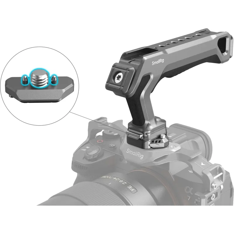 Рукоятка оснащена резьбовыми отверстиями 1/4-20, отверстиями 1/4-20, быстросъемным креплением H18 cold shoe и быстросъемным слайдером H21, что позволяет использовать широкий спектр аксессуаров, таких как крепление для монитора SmallRig 4487, магическая рука 4488, микрофон 3487, светодиодный видеосвет и другие, для различных съемочных задач.