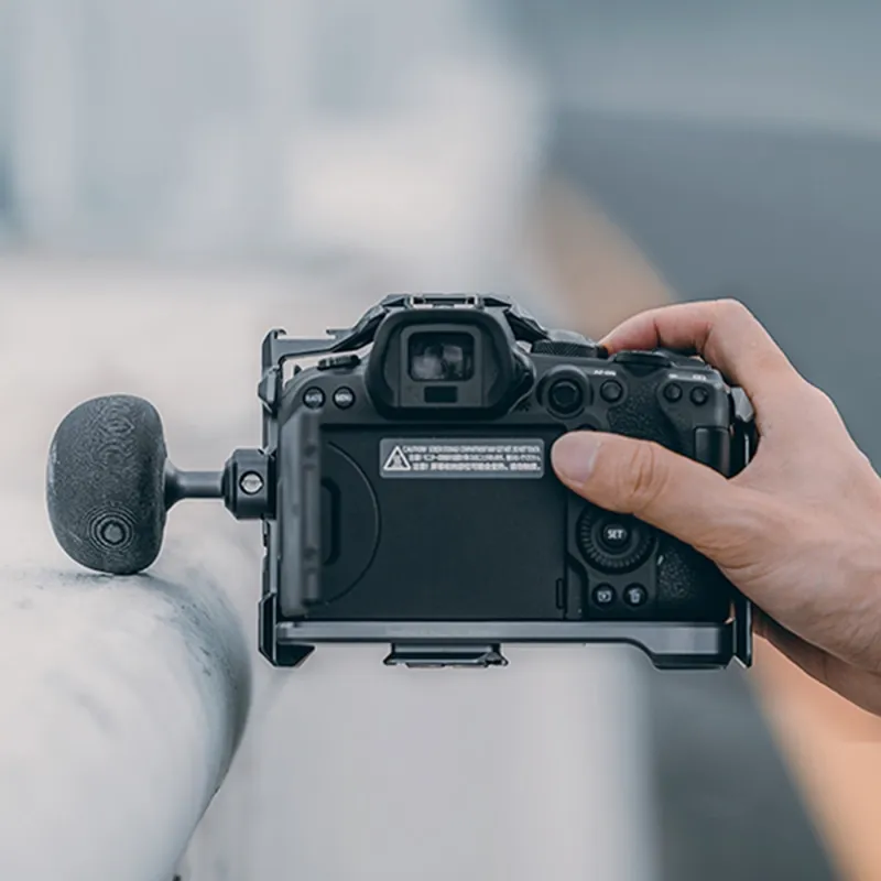 The Handgrip can be attached at multiple points allowing you to use it in any scenario. For instance, it can be used as a sling handgrip for photography from a low angle, as a double handgrip to move the lens easier or use the centre of the mushroom as a support.