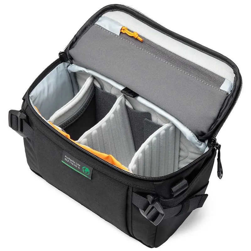 Адаптируетс к каждому моменту ProTactic Lite SLX 110 AW III влетс частью коллекции ProTactic III от Lowepro и представлет собой универсальную сумку дл фотоаппаратов дл фотографов. В эту сумку помещаетс полнокадрова гибридна камера с прикрепленным объективом 24–70 мм f/2,8, а также перегородки дл объективов меньшего размера и других аксессуаров. Его можно использовать как отдельную сумку или внутри рюкзака ProTactic Lite.