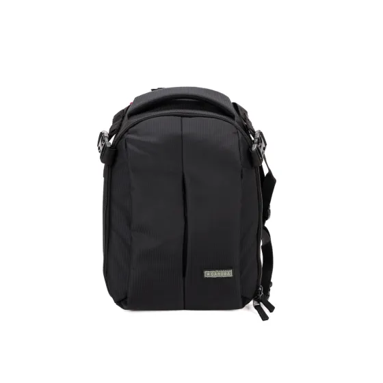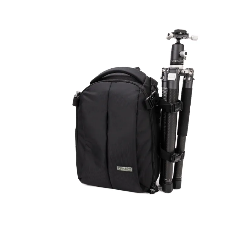 Caruba Skydex 120 Внешне рюкзак Caruba Skydex 120 компактен, но в нем достаточно места для хранения небольшой зеркальной или системной камеры с установленным объективом, пары дополнительных объективов, вспышки с необходимыми аксессуарами, такими как аккумулятор, карты памяти и кабели. В рюкзаке достаточно отделений для личных вещей. Продуманная компоновка Caruba Skydex 120 Рюкзак Skydex 120 имеет основное отделение, которое разделено на две секции. Спинная секция имеет мягкую подкладку и разделители, которые можно установить в нужном положении. Передняя секция находится в уплотнительной крышке. Это сетчатый отсек с двумя молниями, где можно аккуратно хранить кабели. Эргономичный дизайн с многочисленными возможностями хранения Caruba Skydex 120 имеет очень эргономичный дизайн с удобной переноской и грудными ремнями с быстрой застежкой. Благодаря этому вес оптимально распределяется, и вы можете носить рюкзак долгое время, не испытывая дискомфорта. Спинка рюкзака выполнена из мягкого и дышащего материала. Имеется петля для транспортировки штатива.