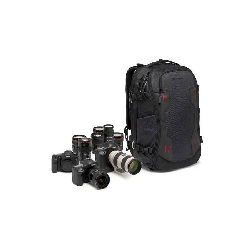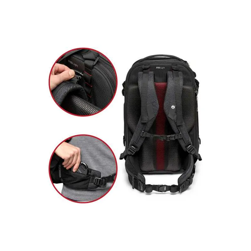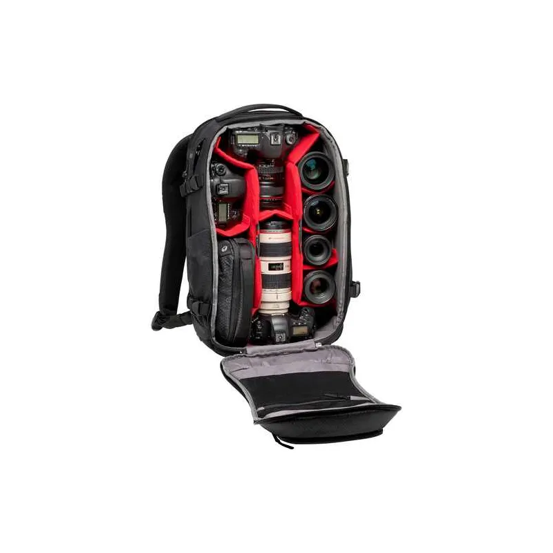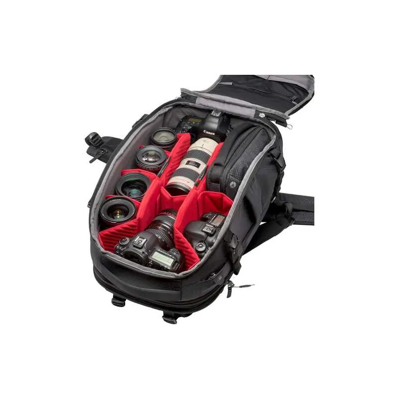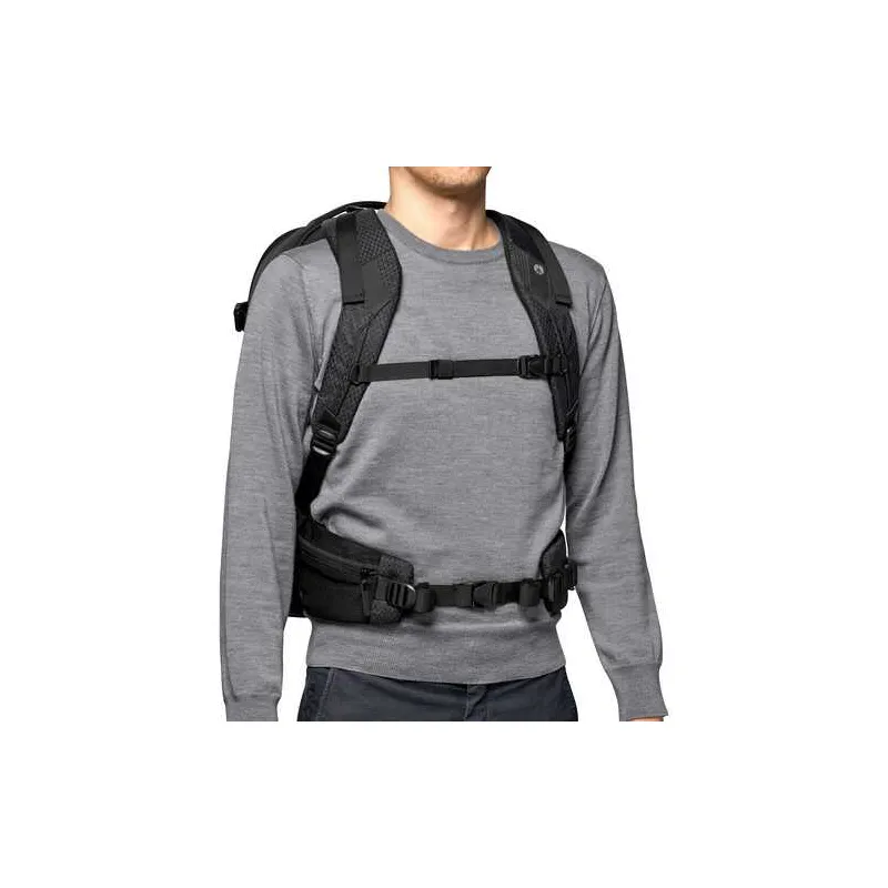 Designed for the professional shooter on the go, the large Manfrotto Pro Light Flex Loader 17L Camera Backpack holds two DSLR or mirrorless cameras with attached lenses, up to four more lenses, a folding drone, accessories, a laptop, and personal items. With all that gear weight, Manfrotto designed an adjustable harness system, complete with sternum strap and belt, for the perfect and most comfortable fit.