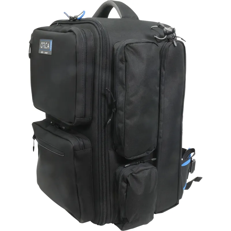 ORCA OR-25 Camera Back Pack is designed to hold video cameras such as Sony PXW-X280, FS-7, Panasonic EVA-1 fully equipped, Mini Alexa fully equipped, BlackMagic URSA, JVC-AG-HM-850U and similar size cameras.