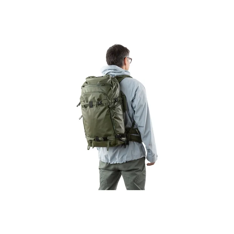 Рюкзак Action X30 армейского зеленого цвета от Shimoda Designs - это универсальная, многофункциональная сумка, способная удовлетворить интересы фотографа-приключенца, создателя мультимедиа, туриста или любителя горных видов спорта. Внутри просторное основное отделение имеет систему перегородок, образующих дополнительную нижнюю секцию, которая расширяет возможности организации содержимого рюкзака при использовании с отдельно приобретаемым Shimoda Designs Medium Mirrorless Core Unit Version 2. Созданный для хранения и организации фото-, видео-, аудио- и цифрового мультимедийного оборудования, Medium Mirrorless Core Unit Version 2 может вместить до двух средних зеркальных или беззеркальных камер вместе с шестью объективами; или две средних зеркальных или беззеркальных камеры вместе с двумя объективами, плюс комплект дронов среднего размера. Средняя беззеркальная камера версии 2 дополняет рюкзак Action X30 боковым отверстием на молнии, которое совпадает с боковым отверстием на молнии рюкзака Action X30 для беспрепятственного доступа к оборудованию, находящемуся внутри, когда сумка повернута со спины на бок правой стороной вверх.