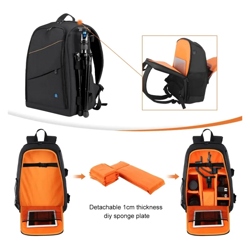 Профессиональный рюкзак Puluz — полезный аксессуар, который отлично подойдет для перевозки различных фотоаксессуаров и фотоаппаратов. Он изготовлен из качественных материалов, поэтому его переноска даже во время длительной поездки не доставит пользователю никаких проблем. Специально разработанный интерьер с регулируемыми отсеками надежно защищает вашу технику от повреждений, а кроме того, вы можете легко настроить его под свои нужды. Он также поставляется с водонепроницаемой накидкой.