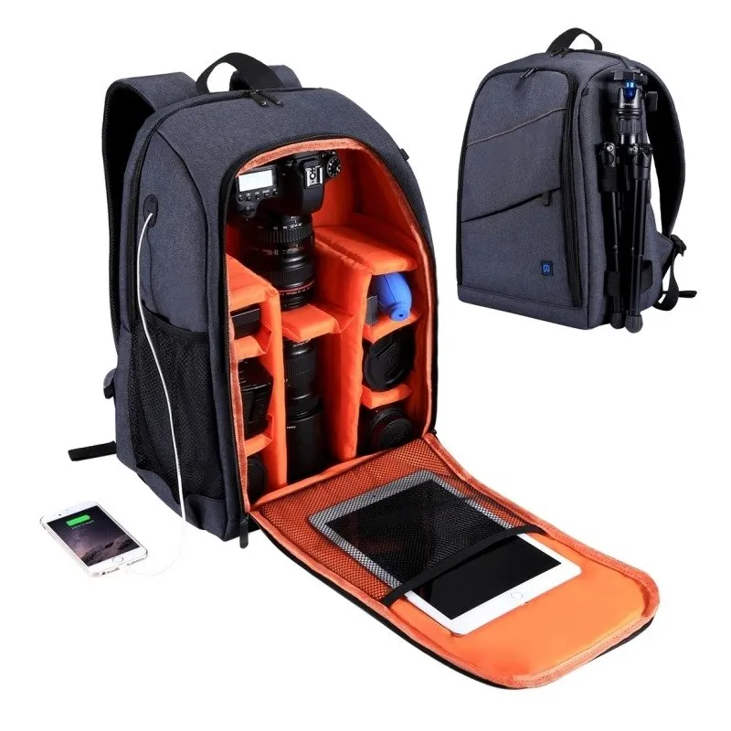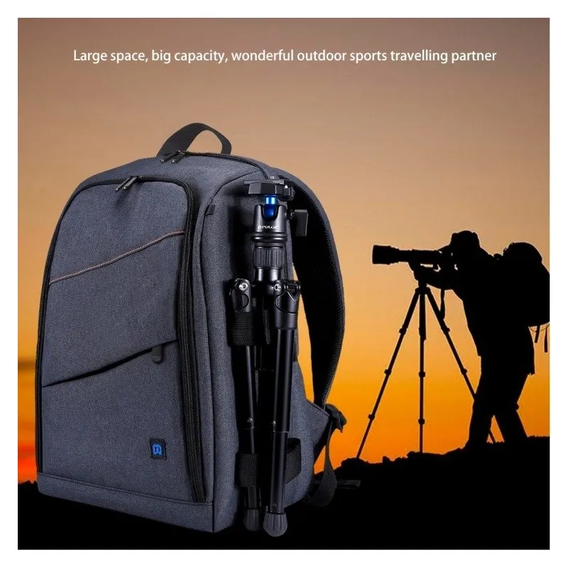 Профессиональный рюкзак Puluz - это полезный аксессуар, который отлично подойдет для транспортировки различных фотопринадлежностей и фотоаппаратов. Он изготовлен из высококачественных материалов, поэтому его переноска даже во время длительной поездки не доставит пользователю никаких проблем. Специально разработанный интерьер с регулируемыми отделениями надежно защитит ваше оборудование от повреждений, более того, вы сможете легко настроить его под свои нужды. В комплект также входит водонепроницаемая накидка.