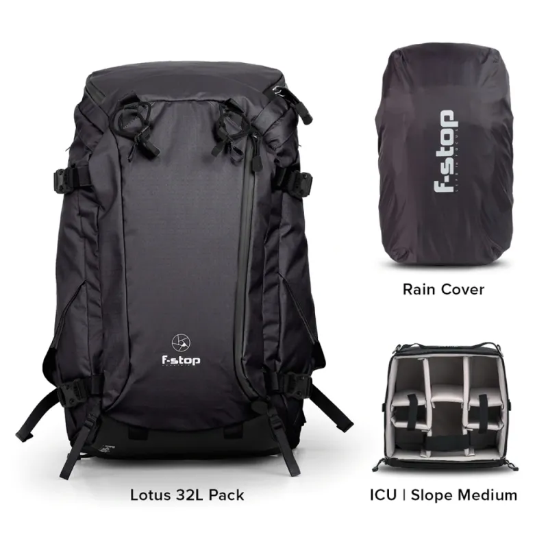 The 32Liter Lotus delivers rugged durability in a low profile format. The 32 liter internal capacity is perfect for mirrorless or gripped DSLR cameras paired with the Medium Slope Internal Camera Unit (included in the Essentials Bundle). You gain additional storage capacity with full length expanding side zipper pockets, a front zipper pocket, and a top lid. The Lotus camera pack is weather resistant to protect your gear against the elements. You will also enjoy exceptional all-day support from an internal aluminum frame and adjustable support system.