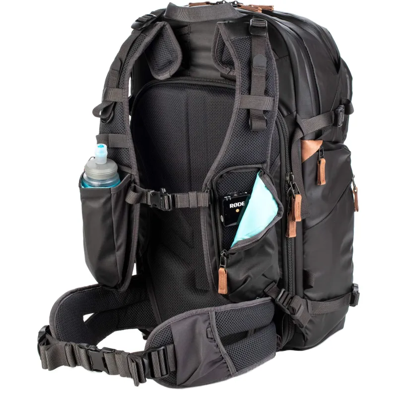 Черный рюкзак Explore v2 30 Backpack Photo Starter Kit от Shimoda Designs представляет собой среднюю модель флагманской линейки рюкзаков для фотоаппаратов и включает в себя средний основной блок, в который поместятся камеры, включая FUJIFILM X-T4 и Sony a7, а также Canon 5D или камеры аналогичного размера. Эта универсальная многофункциональная сумка способна удовлетворить все потребности фотографа, создателя мультимедийных материалов, пешего туриста или путешественника.