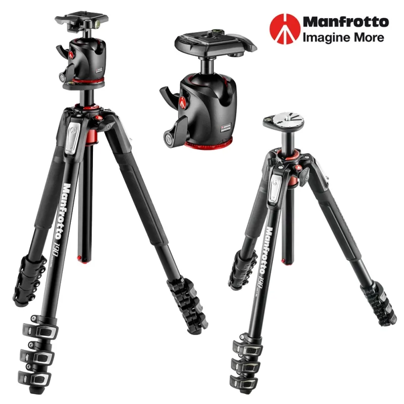 This 190 kit comprises a super-compact 190XPRO4 4-section aluminium tripod and a compact, versatile ball head. Both tripod and head have advanced features and excellent build quality. The new QUICK POWER LOCK (QPL) system is one of the most eye-catching and unique features of the new 190. It is a strong, ultra fast and ergonomic locking system that allows for quick, complete extension of the legs with operation of all locks, on each leg, possible with one hand. The new Rotating Levelling Bubble is quick to set up and allows the tripod to be positioned more precisely. It is easy to use, whatever the shape of the head or however the tripod is set up. The new Leg Angle Selectors are also easy to set up, as they are made following the most innovative ergonomic standards and prevent fingers being trapped in the upper casting. The 190 provides a portable photographic studio, thanks to the new "Easy link" plug, which enables instant connection between tripod and accessoriesThe 190 maintains all the history and heritage of this core Manfrotto family, but includes a host of elegantly simple features and practical improvements. This 190 kit comprises a super-compact 190XPRO4 4-section aluminium tripod and a compact, versatile ball head. The key feature of the kit is the tripod's 90° centre column mechanism, which allows the column to be extended vertically as normal, or horizontally to open up a wide range of framing and shooting possibilities; this makes the 190XPRO4 an extremely versatile tripod, suitable for a wide range of photography and video applications. . The horizontal column mechanism is housed within the tripod's top casting for compactness, but it is easily and quickly extended whenever you need it. There is no need to disassemble when switching between vertical and horizontal column orientation, and can even be done with a camera attached. The 4-section legs of the tripod make it extremely compact The horizontal column mechanism and the 4-section legs help to reduce the closed length of this tripod by 16cm compared to preceding 190 models - a boon for any travelling photographer. The legs are also fast to extend and adjust, thanks to the Quick Power Lock levers that block and unblock each leg section. The special design of the QPL levers allows a more comfortable and stronger single-handed grip of the leg locks. From folded, the sections of each leg of the tripod can be released in a single movement. The QPL lever design also offers more powerful locking of each section, meaning the tripod is more stable and rigid than with traditional lever designs. Intuitive and ergonomic leg angle selectors allow each leg to be independently and solidly set to any of the preset angles, again allowing considerable positioning freedom. A bubble level is built in to the top of the centre column for precise framing. The bubble level rotates freely around the centre column, so it can be positioned wherever it's easiest for you to see it while adjusting the tripod, and without it either being obscured by the mounted head and camera, or getting in the way of head or camera controls. The top casting of the tripod has an Easy Link connector for supporting a photo or video accessory on an extending arm or bracket. The ball head included in this kit is a 496RC2. In Detail The new vertical-horizontal column mechanism is hidden inside the tripod's top casting Vertical-horizontal column mechanism is hidden inside the tripod's top casting view larger Solid and fast to set up The Quick Power Lock levers provide extreme locking grip and can be released with one hand and a single movement. Limitless creativity 90° column The same, great original feature that has meant the success of this product has now a different design but keeps its core possibility of discovering new perspectives. Portability 90° column The vertical-horizontal column mechanism is hidden inside the tripod's top casting until it's needed, saving space. Limitless creativity easy link The 190 includes an Easy Link attachment in the top casting, allowing the tripod to expand the shooting holding a LED light, flash, reflector or other accessory, turning the 190 into a mobile studio. Smooth operations Rotating bubble: The bubble level can be rotated 360° so it never falls inconveniently under a head locking lever and can always be positioned where it's more convenient for the user. Leg angle selectors: the leg angle selectors are more intuitive and ergonomic, cutting set-up time while also making the190 safer to use. Outstanding style The 190's house style is distinct, yet still distinctly Manfrotto, with bold, clean shapes and lines dictated by function. The Manfrotto logo and "Made in Italy" feature prominently, and help the 190 to stand out from the crowd everywhere from point of sale to photo location. Product Features Thanks to the additional 4 section, legs can be collapsed to a more compact dimension, enhancing transportability. It's the right choice for all those photographers wanting a strong and reliable support even when travelling. It's also available in a kit with a ball head (with quick release camera plate) allowing you to position the camera freely and quickly, then block it solidly in place using the convenient single locking knob, ready to shoot in an instant. Technical features of the Manfrotto 190 kit - Aluminium 4-section horizontal column tripod and ball head - MK190XPRO4-BH Maximum height: 170cm Maximum height (with centre column down): 145cm Minimum height: 8cm Weight: 2.5kg
