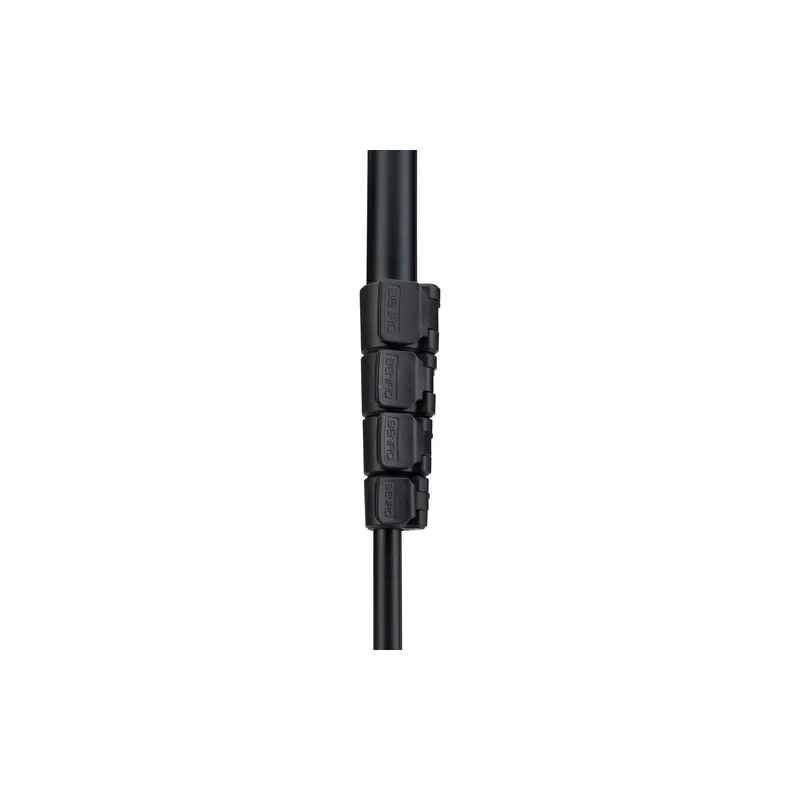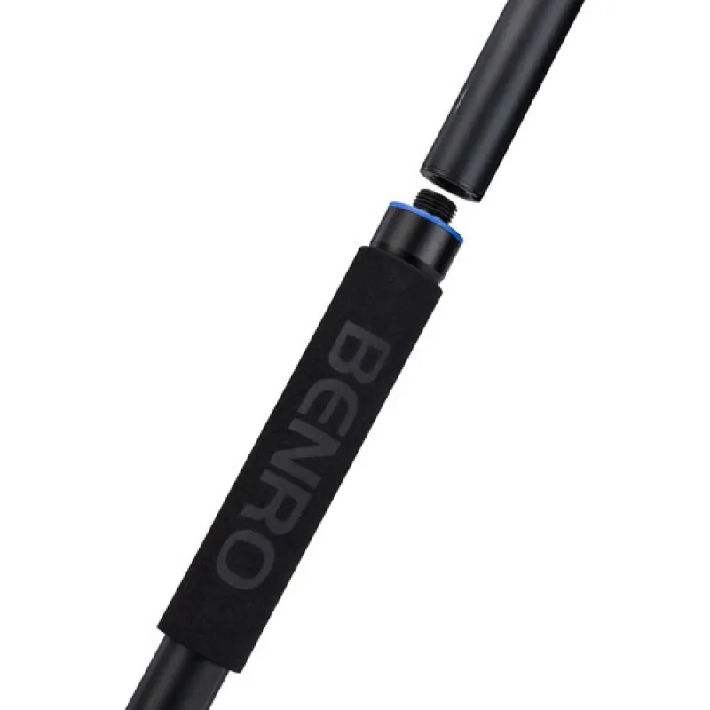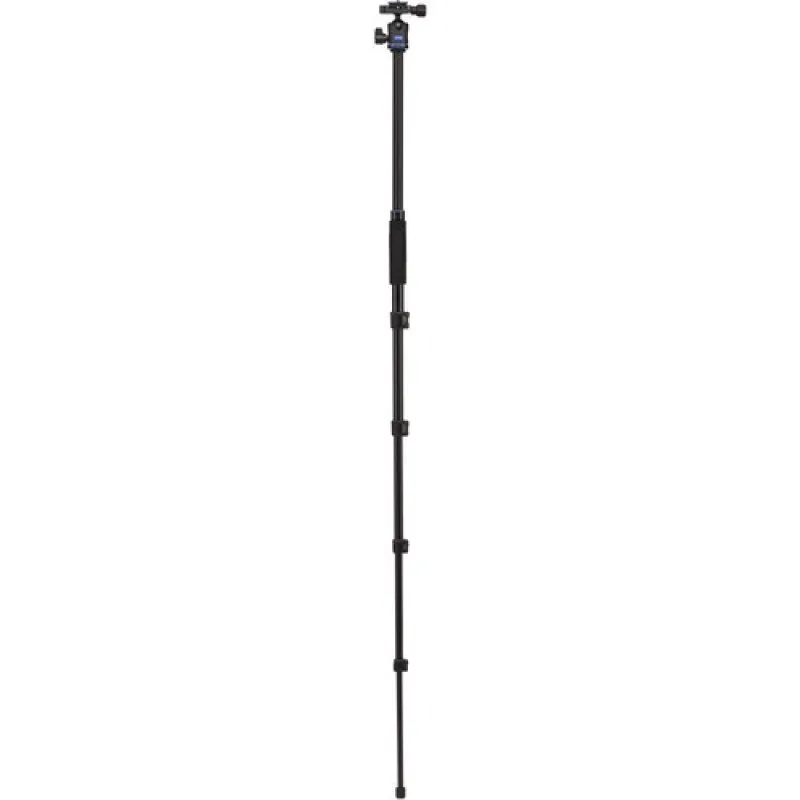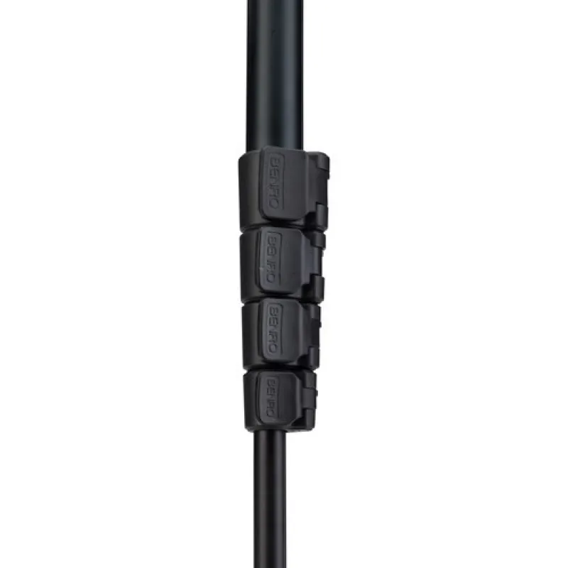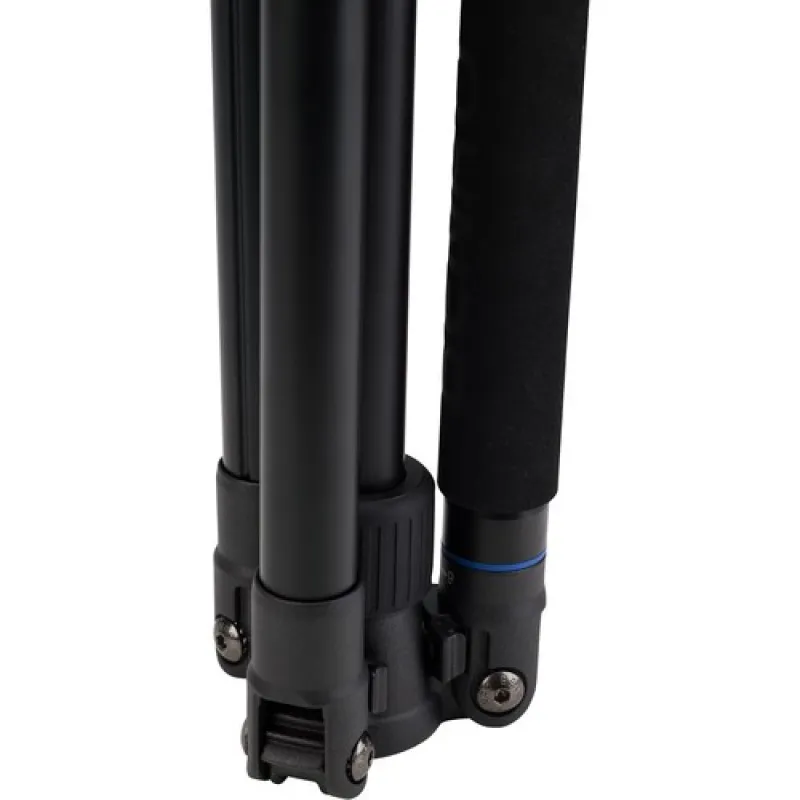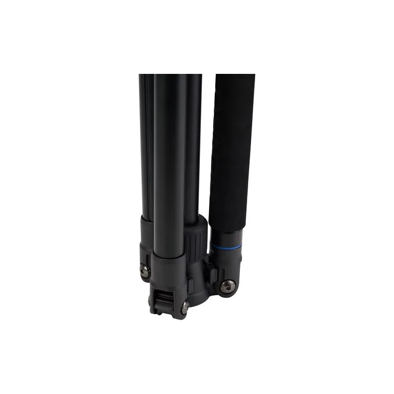 The 5-section legs are secured with flip locks, and can be individually adjusted in both height and leg angle. One of the legs has a foam grip and can be detached from the tripod and connected to the center column to form a full-sized monopod.