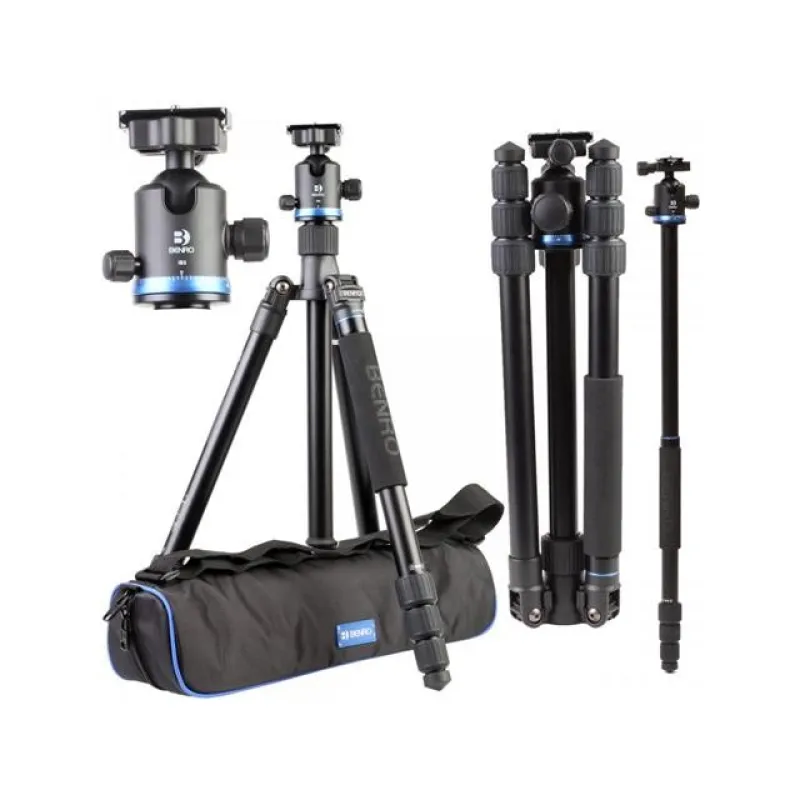 The FIT19AIH0 iTrip Series 0 Aluminum Tripod from Benro includes the IH0 ball head which is encased in the reverse-folding legs during transport. This allows the tripod to fold down to just 20.1". When fully extended, the tripod reaches 58.1" high and can hold 8.8 lb.