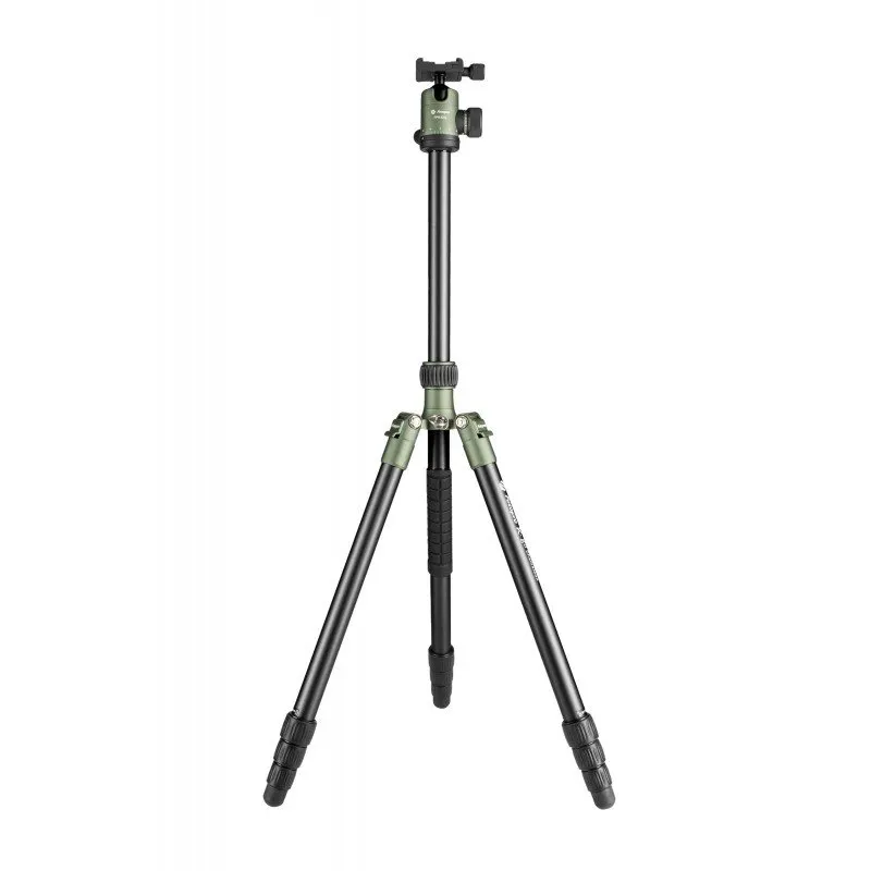 Specification stand (without head) - model X-go Chameleon - color: green-brown - Material: Aluminum - maximum load: 15 kg - weight: 1.295 kg - maximum working height of the protruding central column: 148.5 cm - maximum working height of the lowered central column 121 cm < br /> - minimum working height: 34 cm - height in the transport position: 43 cm - number of leg section 4 - type locking legs T-lOCK The Fotopro X-go Chameleon series of tripods is designed for photographers who require equipment of the highest quality and functionality, while maintaining a compact size and mobility. It is the ideal choice for travellers and landscape photographers using lighter DSLR or mirrorless cameras. Functional and compact kit The X-go Chameleon is a robust aluminium tripod equipped with a ball head and monopod function, and is the 'smaller brother' of the Fotopro X-go Predator series tripod. The maximum working height of the tripod with the head installed is 157.5 cm. At the same time, thanks to its reverse-folding capability, the X-go Chameleon has a compact transport size of only 43 cm. The tripod has a three-stage leg tilt system, which consists of four sections. The individual sections are locked in place with a convenient to use swivel clamp system called T-Lock. The tripod's legs are studded with spikes, onto which the supplied rubber non-slip tips can be fitted. This ensures the best grip, regardless of the ground. The X-go Chameleon tripod is equipped with a central column with a reverse clamping function. This solution is particularly useful for macro photography and shots from the so-called "frog perspective". The thread on the bottom of the column allows another head or hook to be installed on it, from which additional weight can be hung to improve the stability of the tripod. A double safety system protects against accidental lowering of the column. Any head with a 3/8" or 1/4" mounting thread can be mounted on the tripod, to change the thread you need to reposition the screw with the included spanner. Durable ball head with up to 8kg load capacity! Tripods from the X-go Chameleon line are equipped with the FPH-52Q ball head with Arca Swiss standard quick-mount plate. The head has a set of three spirit levels, making it easy to level the camera, and a quick release lock to prevent accidental unplugging of mounted equipment. The FPH-52Q has two precise and smoothly operating knobs. One is used to lock and adjust the clamping force of the ball, while the other locks the movement of the rotating head base, which additionally has a 360° scale for easy panning. The head is secured against accidental unscrewing from the tripod by a screw, tightened with the included spanner. Two in one - monopod function Chameleon is more than just a tripod. It also conceals a monopod function. After unscrewing one of the legs and the central column, you get a fully usable monopod with a height of 155.5 cm, with a comfortable rubber grip. Modern and unique design Among other tripods available on the market, the Chameleon stands out not only for its excellent build quality and functionality, but also for its attractive and original design. Highest quality and guaranteed reliability Thoughtful design, top quality materials and precision workmanship ensure that the product will last for years. In addition, all Fotopro tripods come with a six-year warranty! Fotopro's X-go Chameleon series tripods are the perfect choice for professionals and advanced amateur photographers who expect the highest quality workmanship and high mobility. Specifications Photopro X-go Chameleon tripod with FPH-52Q ball head material: aluminium Maximum load capacity maximum load: 8 kg weight: 1,605 kg maximum working height with central column extended: 157.5 cm maximum working height with central column down: 130 cm minimum working height: 43.2 cm height in transport position: 43 cm Stand (specification not including head) colour: green material: aluminium maximum load: 15 kg weight: 1,295 kg maximum working height with centre column extended: 148.5 cm maximum working height with central column down: 121 cm minimum working height: 34.2 cm height in transport position: 43 cm number of leg sections: 4 diameter of leg sections: 25, 22, 19, 16 mm leg locking type: T-LOCK three leg angle positions removable centre column with reversible mounting head platform diameter: 42 mm head attachment with 3/8" or 1/4" anti-skid pads on tripod feet spikes hook head (specification not including tripod) head type: ball head colour: green fabric: aluminium maximum load: 8 kg weight: 310 g height: 9 cm base diameter: 43 mm ball diameter: 30 mm Arca-Swiss standard quick-mount plate with dimensions: 4.2 x 5 cm hole for 3/8 "tripod thread three spirit levels two locking knobs an angle graduation Monopod (specification not including head) maximum height: 122.5 cm (155.5 cm - when extended with central column) minimum height: 40 cm weight: 0.345 kg (0.475 kg - when extended with centre column) maximum load: 5 kg Set contents Photopro X-go Chameleon tripod (green-brown) with monopod function Photopro FPH-52Q ball head with Arca-Swiss standard quick-mount plate set of spare anti-slip rubber tips cover with shoulder strap set of keys hook Guarantee 6 years (manufacturer's warranty)