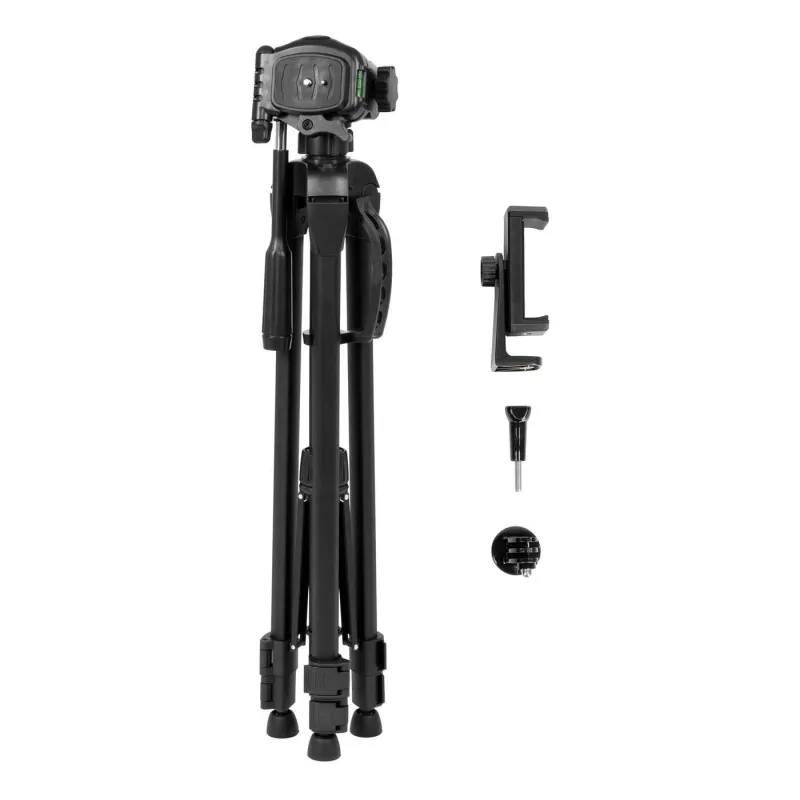The tripod can handle equipment weighing up to 3.5 kg. Its maximum height of 159.5 cm ensures comfortable work even for tall people. Thick aluminium legs with a special cross-section guarantee exceptional stability and durability. Three independent sections, equipped with a convenient clamping system and self-levelling feet, allow you to quickly adjust the height to any type of surface. An additional convenience is a 3D head equipped with a quick-release coupling. It allows you to attach the camera in no time and set the precise frame. The central column is pulled out by means of a convenient crank. The hook in the lower part of the column allows for additional weighting of the structure. A practical, durable and splash-proof shoulder strap cover is also included. The case perfectly protects the tripod during transport. Camrock TC63 Black - Mobile Kit is an ideal solution for those looking for a universal set, ready to work with smartphones, sports cameras and cameras. Reliable brand All Camrock tripods and accessories come with a two-year warranty!