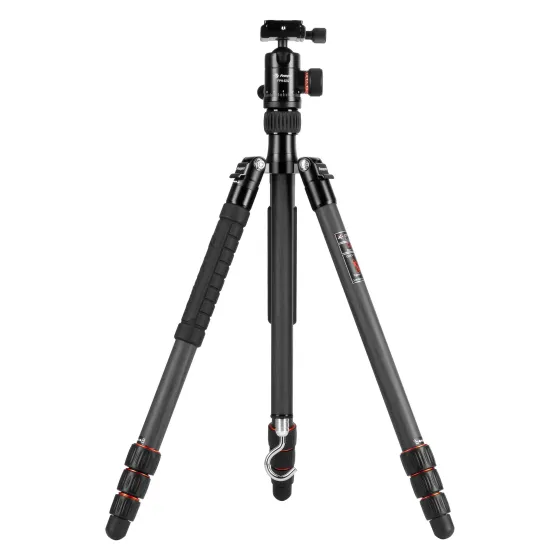 4-section column legs with quick release Strong locking system allows you to adjust the working height in several seconds. 2-in-1 tripod, one of leg can be used as a monopod. ( remove leg with slicone grip from canopy, remove flange palte from center collumn, install the flange palte onto the separated leg ) X-go Max tripod legs are made of high-quality Carbon Fiber Material. 180-Degree Reverse Folding : Only 18.7 inch (47.5 cm).(included a portable tripod carrying bag) This tripod adds a special function: 2-in-1 tripod, one of the leg can be changed into a lightweight monopod or alpenstock within seconds (Monopod pouch is included) Detachable Center Column Height Reduction: The bottom part of the center column is detachable. The center column consists of 2 sections which is still reversible to achieve low angle shooting Ball head is compatible with almost all DSLR cameras and camcorders,Universal and fashionable quick release plate is specially designed for travel and outdoor photograph activities Our professional tripods, monopods, and ball heads come with a 6-year warranty.the Alu-mag forged technology and the CNC precision cutting technology have been applied to this tripod What's in the Box 1 X Tripod 1 X FPH-52Q Ball head 1 X Quick release plate 1 X Carry Bag 1 X Manual Instructions 1 X Versatile Wrench 1 X Monopod pouch 1 X Removable rubber feet 1 X Packing box 1 X Weight hook Product Specification Model No:X-go Plus Color: Black Material: Carbon Fiber Net Weight: 1.035kg (2.28lbs) Sections: 4 Max Tube Diameter: 25MM Max Height: 1488MM (58.58 inch) Folded Height: 430MM Min Height: 345MM Load Capacity: 15KG (33.06lbs)