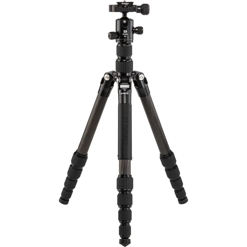 Черный штатив 1 Series Tripster Travel Tripod от Benro - это пятисекционный штатив из углеродного волокна с двухсекционной центральной колонной, которые вместе достигают максимальной высоты 59,3", при весе 3 фунта. Полностью раздвинув ноги, опора опускается до минимальной высоты 14". Кроме того, ножки складываются в обратном направлении до компактных 14,2", так что вы можете переносить ее в другое место. Съемная центральная колонна и одна нога могут объединяться в монопод с максимальной высотой 61,4". Шаровая головка, совместимая с типом Arca, выдерживает нагрузку 18 фунтов и оснащена быстросъемной пластиной с резьбой 1/4"-20 для крепления камеры. Кроме того, гнездо 1/4"-20, расположенное на вилке штатива, используется для крепления других аксессуаров, которые помогут вам в создании фотографии.