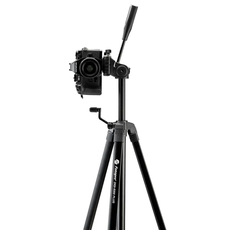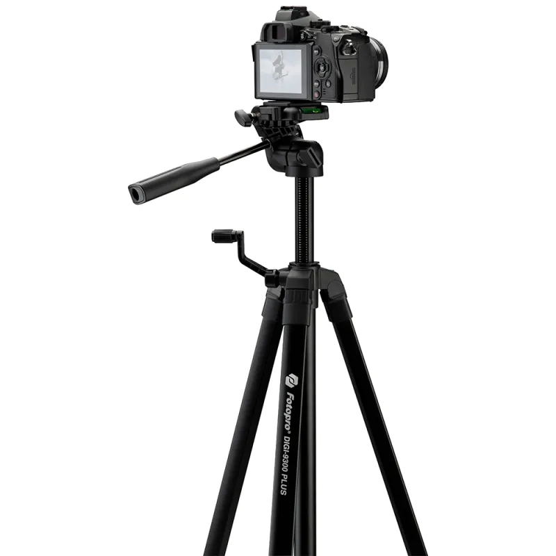 The Fotopro Digi-9300 Plus is an aluminum all-purpose, three-section support with flip leg locks that open, so you can extend the legs along with the geared center column to a maximum height of 180cm. The tripod collapses to a minimum height of 63cm and folds to a length of 63cm