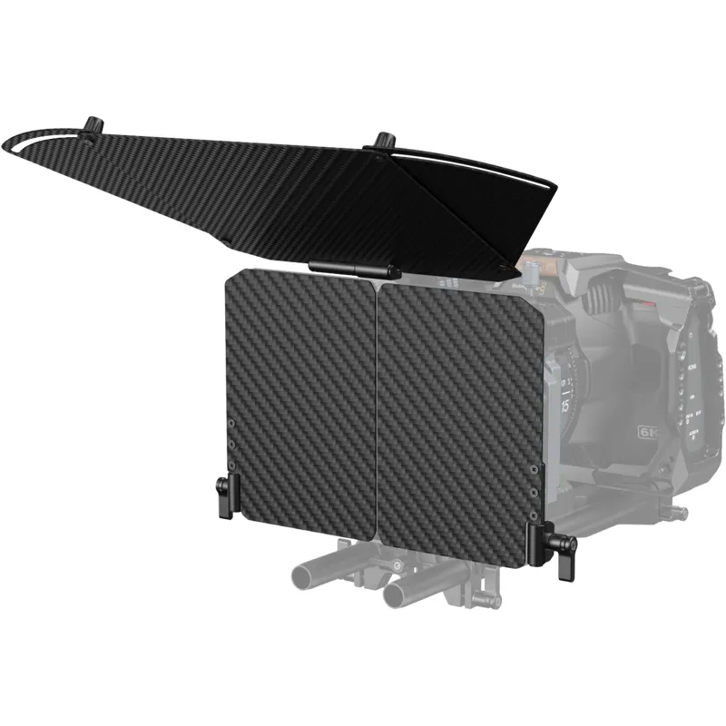 It includes a top flag and two side flags, among which, the carbon fiber top flag opens 180° with side wings extending 38° for additional light blocking and the side flags open 180°.