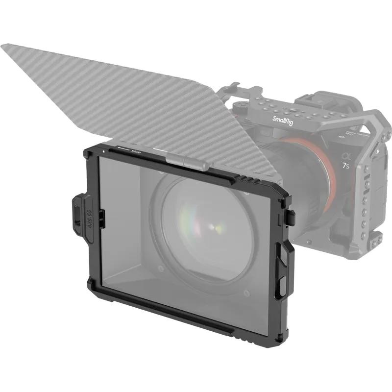 The SmallRig Filter Holder (4 x 5.65) 3319 is part of the Mini Matte Box 3196 and allows for quick installation of 4 x 5.65" 4mm thick plug-in filters. It connects to the matte box with a NATO clamp and supports multiple filters at once. It also protects the plug-in filters from minor impacts. When changing filters, you can hold its frames to avoid leaving scratches and fingerprints.