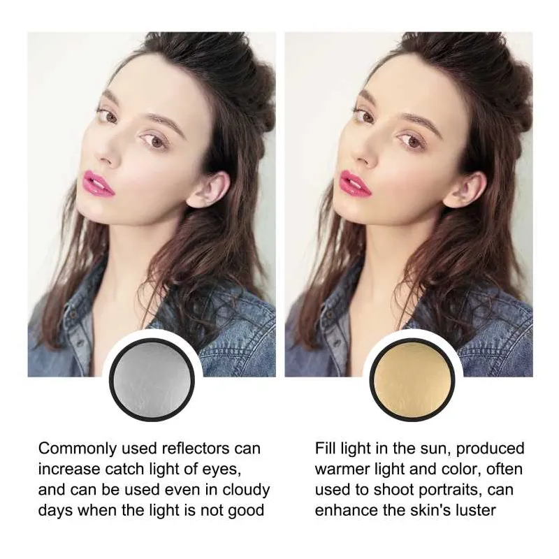 You'll use the golden board to accentuate the warmth of the colours and create a sunlight effect. It is ideal for portrait photography. The silver one will help you work in low-light environments. Evaluate your needs and choose a panel to make your photos look natural - no matter what the conditions are!