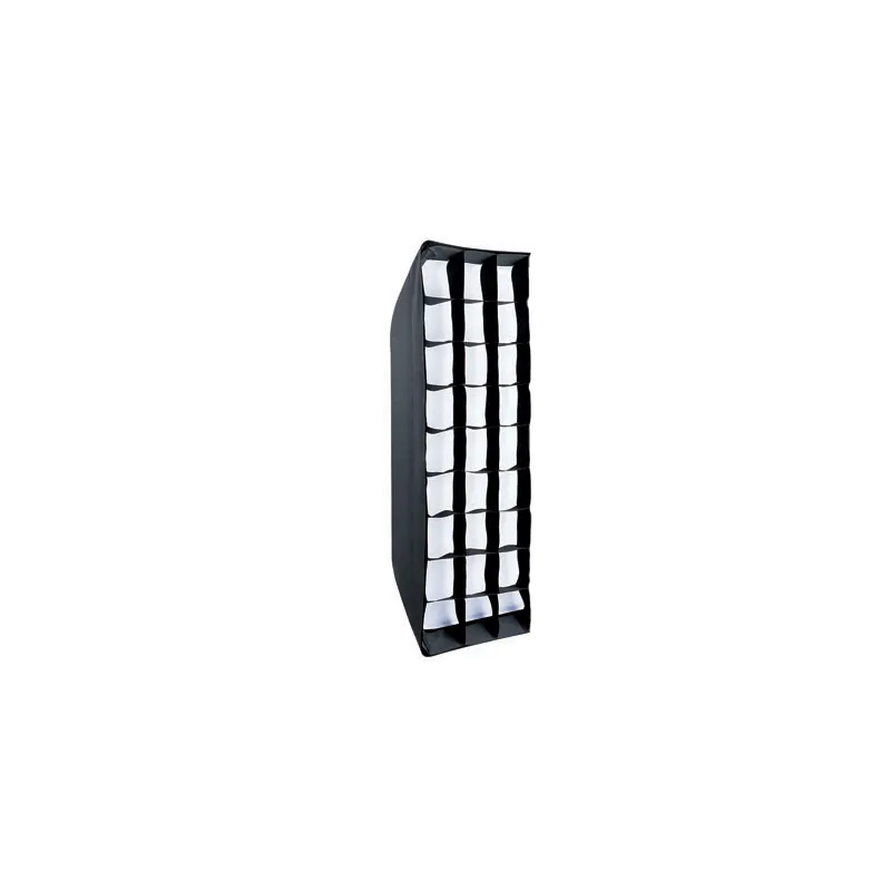 The Linkstar QSSX-30150HC Foldable Striplight Softbox + Honeycomb Grid is 35 x 160 cm in size and is easy to assemble. The QSSX-30150HC is suitable for model photography and is supplied with 2 diffuse cloths. The diffuse material spreads the light evenly, provides a neutral colour temperature and minimizes shadows and reflections. Further, the QSSX-30150HC is supplied with a detachable honeycomb grid, which can be used to direct the light.