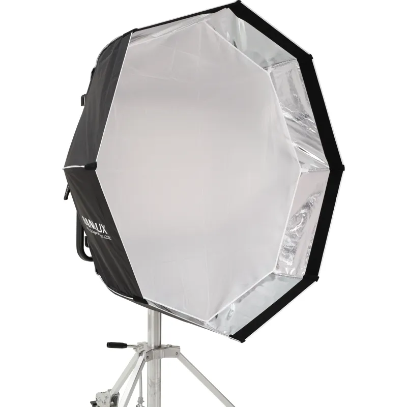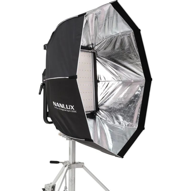Designed specifically for the Dyno fixture, the 5 Octa Softbox for Dyno 1200C from Nanlux softens the output and lowers the contrast of the lights bright LEDs. The modifiers large size imparts a wraparound quality of light (especially when used close up) that is flattering to your subject. A bonus is the natural-looking catchlights in your subjects eyes. The Octa Softbox has removable front and interior diffusers and a silver interior to maximize output. An eggcrate grid is included to eliminate spill light and allow directional control to enable selective lighting.