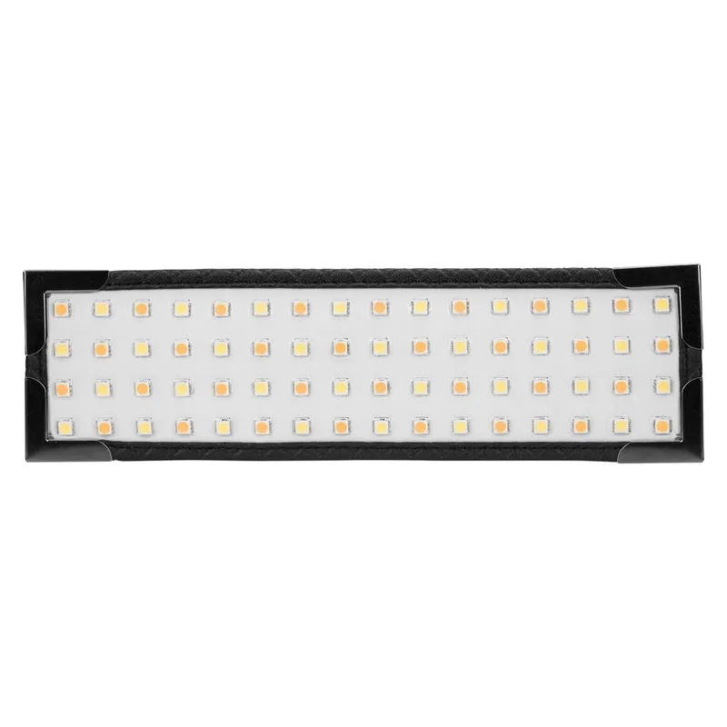 Westcott Flex 10" x 3" Bi-Color LED Mat The unique Westcott Flex 10" x 3" Bi-Color LED Mat is an in color temperature adjustable flexible pane of 25 x 7.6cm and provided with 64 LEDs. The mat has a light output of 500 lux on 1 meter distance and has a CRI-95-98 certificate. The color temperature of the pane is adjustable from 2800 to 6600K. It only weights 85g thanks to the use of LEDs. The flex is also protected against splash water and dust and gives a light beam of 140 degrees. You can use the mat for endless possibilities for foto and video due to the flexibility of it.