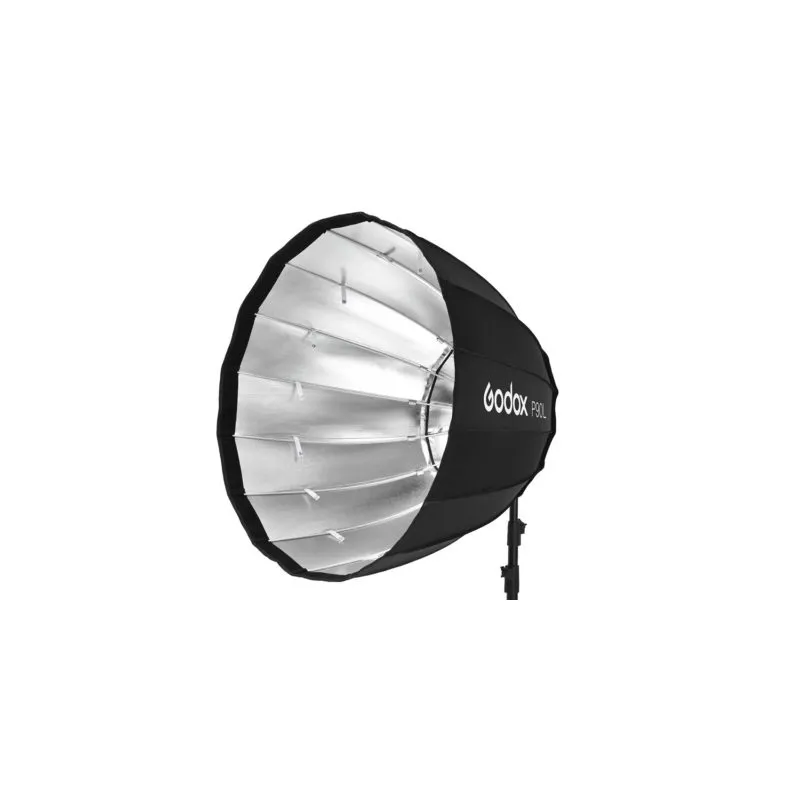 The Godox Parabolic Softbox has a diameter of 90 centimeters and comes with a speed ring for Elinchrom flash units. With this softbox you create an even and very soft light with a smooth transition to shadows. Ideal for portraits!