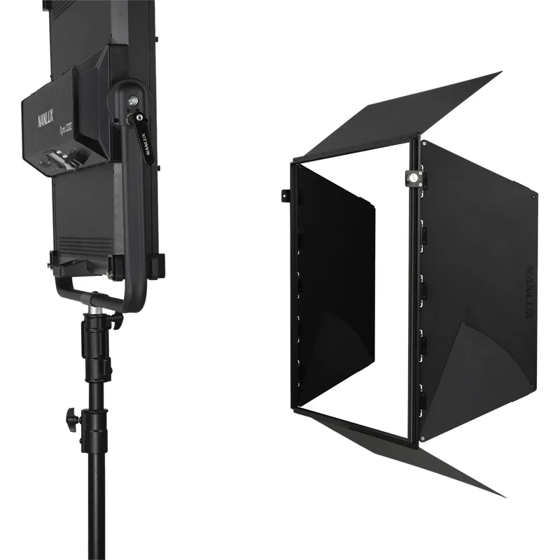 Sturdy and lightweight, the barndoors allow a more precise light cut off, to control spill and create a narrower, more focused beam angle without altering the quality of the softlight.