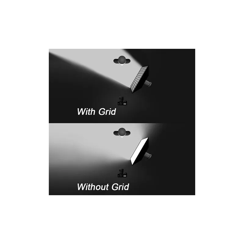 The LHC-36K Honeycomb panel from Falcon Eyes is a professional solution to soften light and direct it in a certain angle. The diffuse cloth makes the light softer and the grid provides a steering in a small angle. In this way you have full control over the light and it will not spread widely. On the last picture you can see what effect this has. The frame of the LHC-36K measures a whopping 360 x 360 cm. You can also use the LHC-36K without the grid, leaving only the diffusion fabric. This makes the light spread wider and softer.