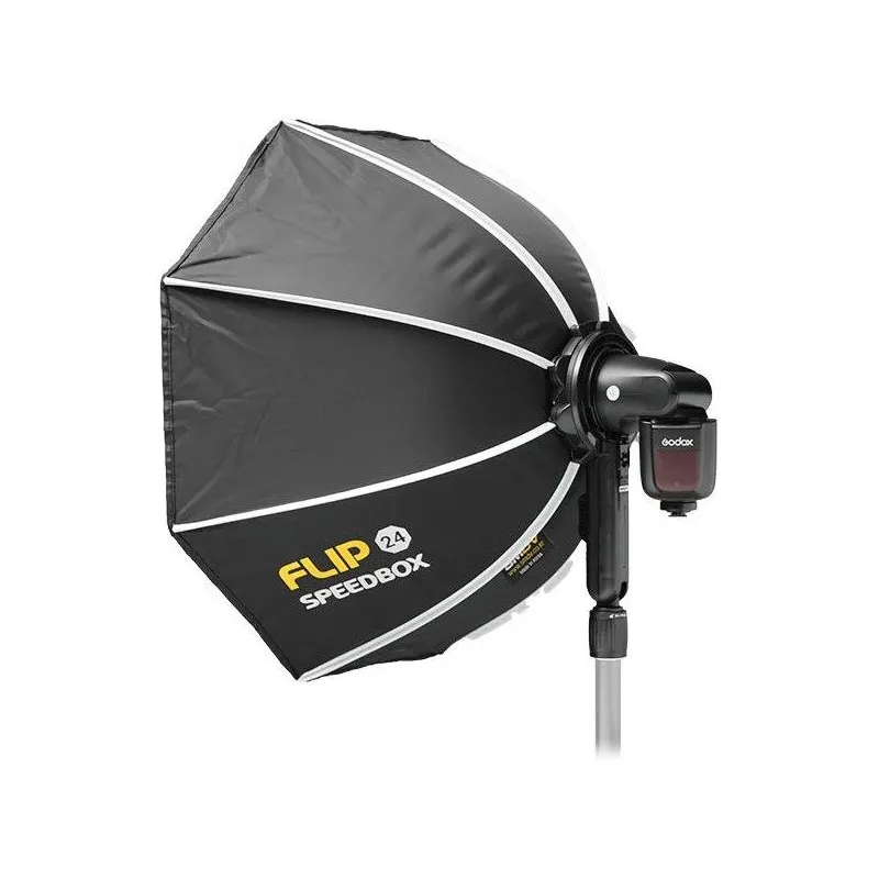 SMDV Softbox Octa 24 Roundhead Set Софтбокс SMDV Speedbox Flip-24 - это восьмиугольный софтбокс, который очень быстро устанавливается. Диаметр Flip-24 составляет 55 сантиметров, а практичная система складывания позволяет быстро раскладывать и складывать его. Он поставляется в удобной сумке для переноски. Два рассеивателя Софтбокс SMDV Speedbox Flip-24 создает красивый, ровный свет в студии или на съемке. Софтбокс идеально подходит для портретных, косметических и фэшн-фотографов. В комплект входят два рассеивателя: внутренний и передний. Эти два рассеивателя закреплены и не снимаются. Быстрота использования После использования софтбокса вам не придется снова его разбирать. Быстро сложите его до удобного размера с помощью удобной системы быстрого складывания SMDV, и через 20 секунд софтбокс снова готов к использованию. Софтбокс SMDV Speedbox Flip-24 изготовлен из алюминия и нейлона. Материал износостойкий. SMDV C-Adapter rip SMDV C-Adapter - это С-адаптер для использования со вспышками Speedlight. Угол угловой рукоятки легко регулируется, поэтому вы можете легко настроить направление света вспышки.