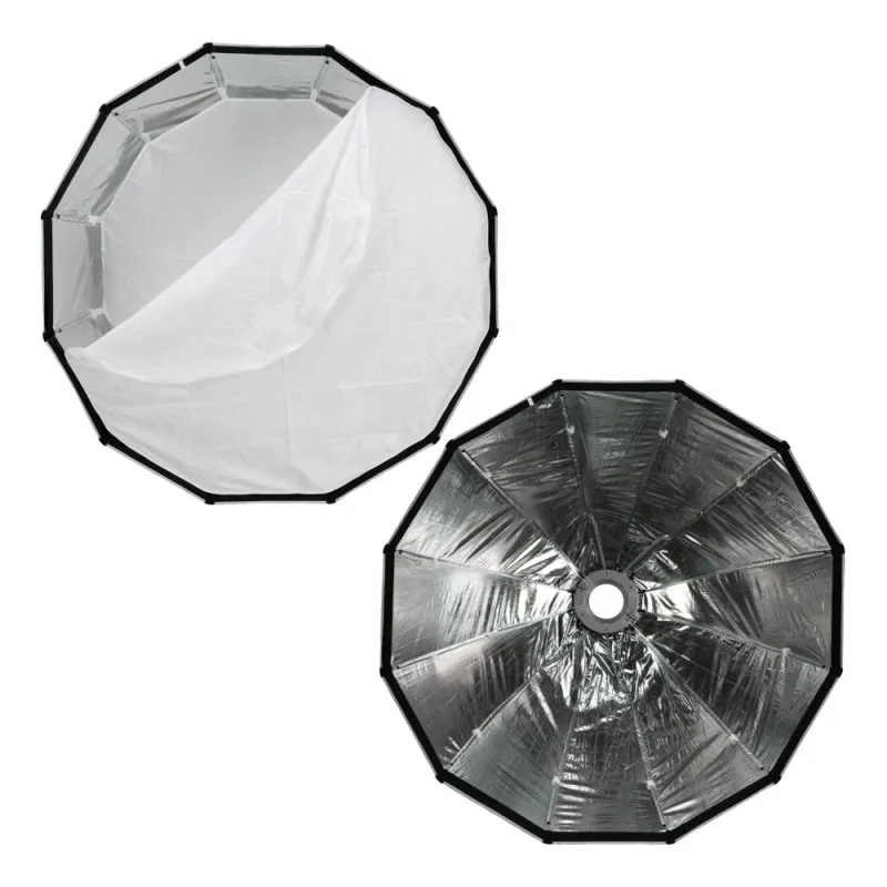 Parabolic, 12-sided deep softbox with grid for even illumination
