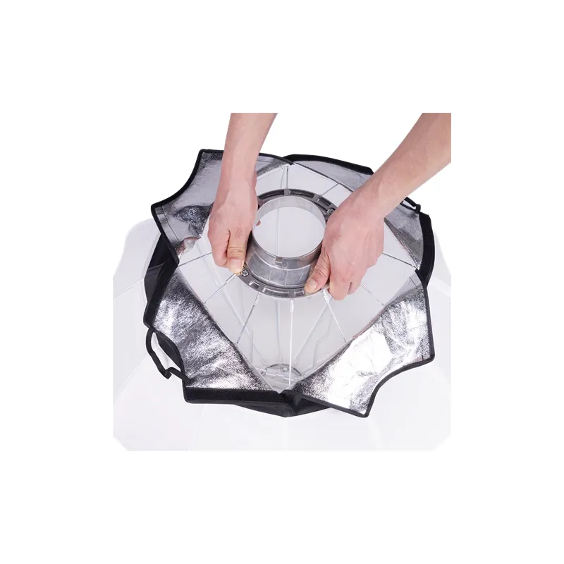 You use the softbox to soften light. Because the softbox has a balloon shape, it ensures wide dispersion. Special diffusion materials ensure that light is uniform over the entire surface of the softbox. Without hotspots. The diameter of the softbox is 62cm. The depth is 55 cm. The adapter ring is interchangeable and has a diameter of 129mm.