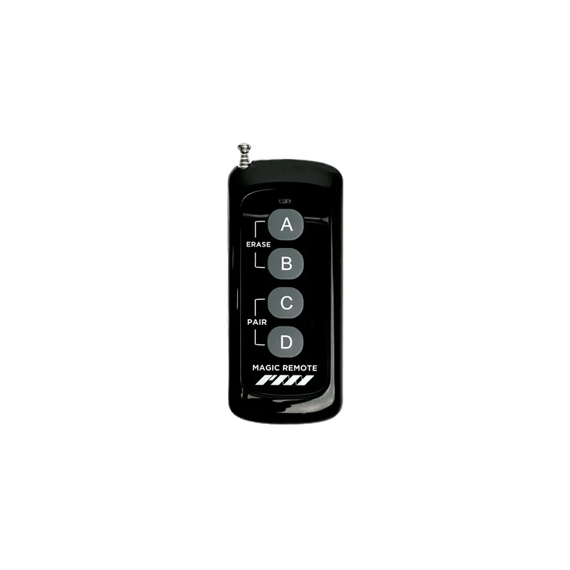 Вы можете управлять одной или несколькими дымовыми машинами удаленно с помощью SmokeGENIE. Устройство можно использовать напрямую с кнопки на задней панели или через этот пульт. Пульт имеет 4 канала, что позволяет легко назначать до 10 дымовых машин SmokeGENIE на каждую кнопку.