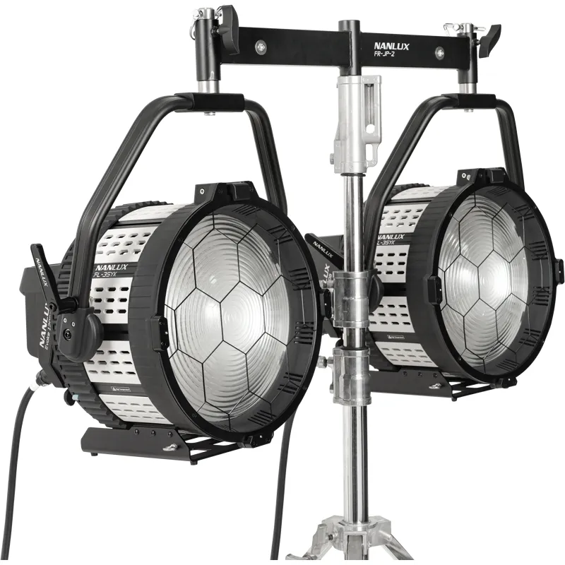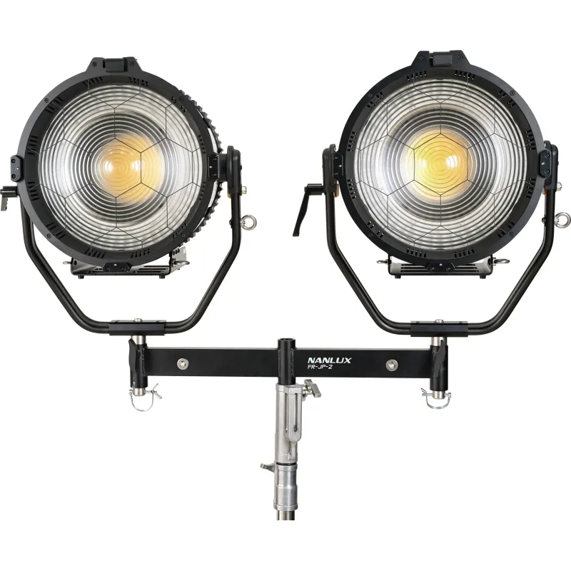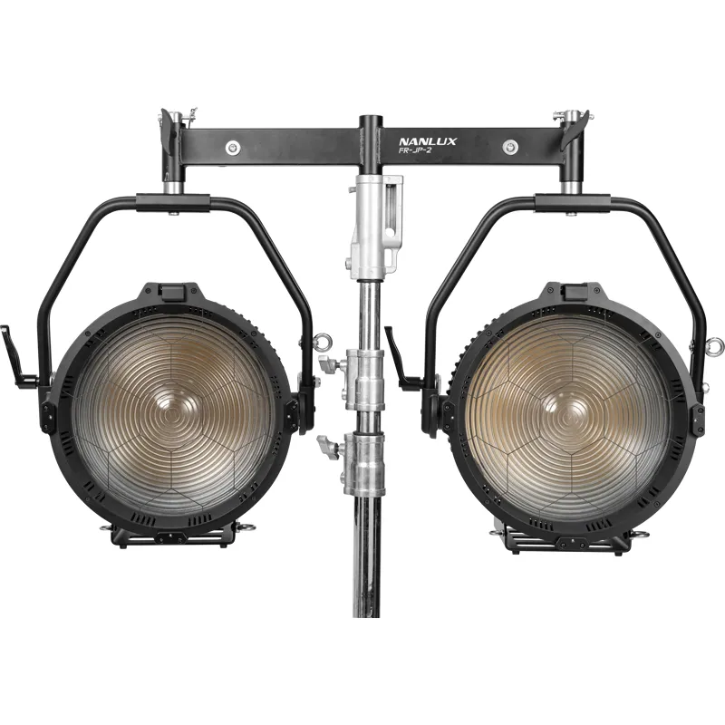 The Nanlux FR-JP-2 Two-light Frame with Junior Pin allows for using two Evoke 1200 or Evoke 1200B in a single frame. Built out of high-intensity aluminium alloy and stainless steel, offering a stable structure, high load capacity and vibration resistance. Easily mount your lights to a compatible C-stand using a junior pin. Supports 360° panning with an adjusting handle.