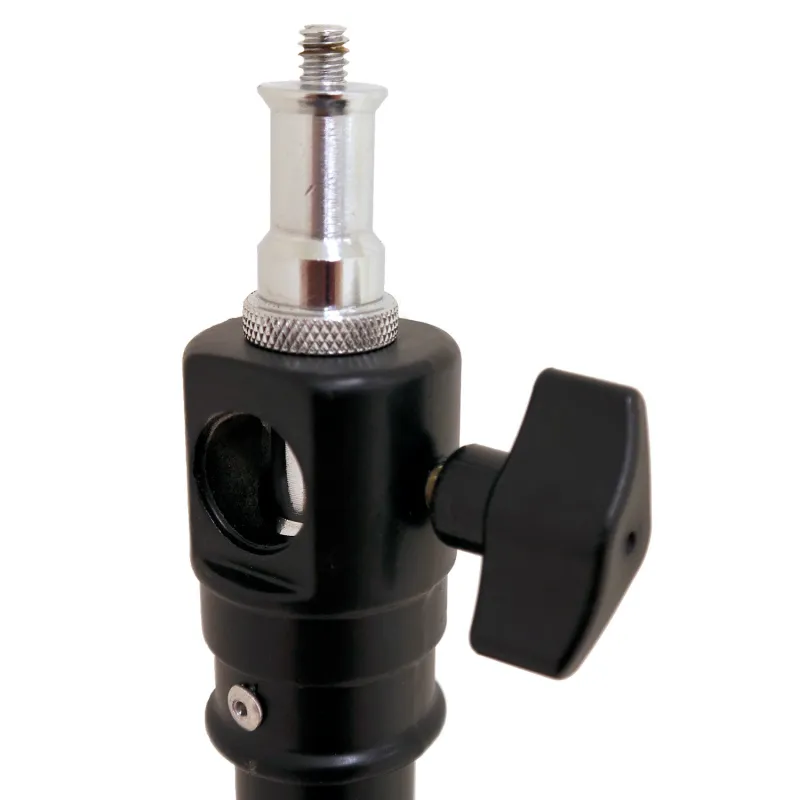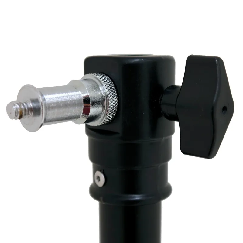 The Caruba Rapidstand consists of three sections that can be adjusted through an easy operated screw lock with large rotary knob. The light stand weighs 1.8 kilogram and is adjustable in height from 90 up to 220 centimetres. The maximum load capacity is 6 kilogram. An universal spigot that can be attached vertically and horizontally can be found on the top. The folded length is 87 centimetres which makes it easy to transport the light stand.