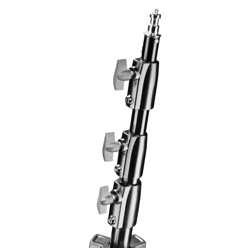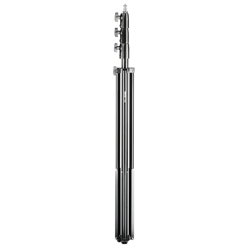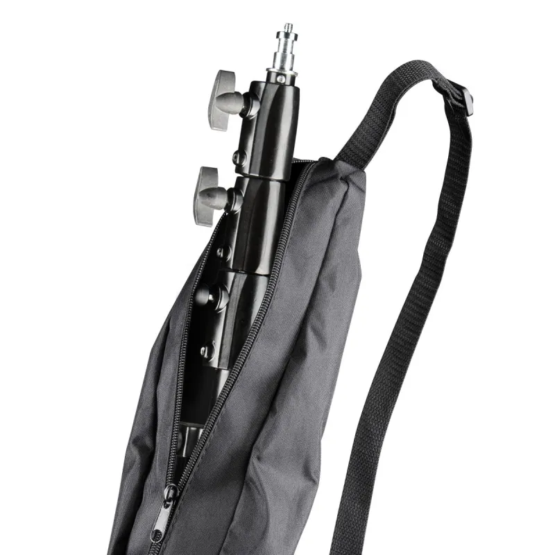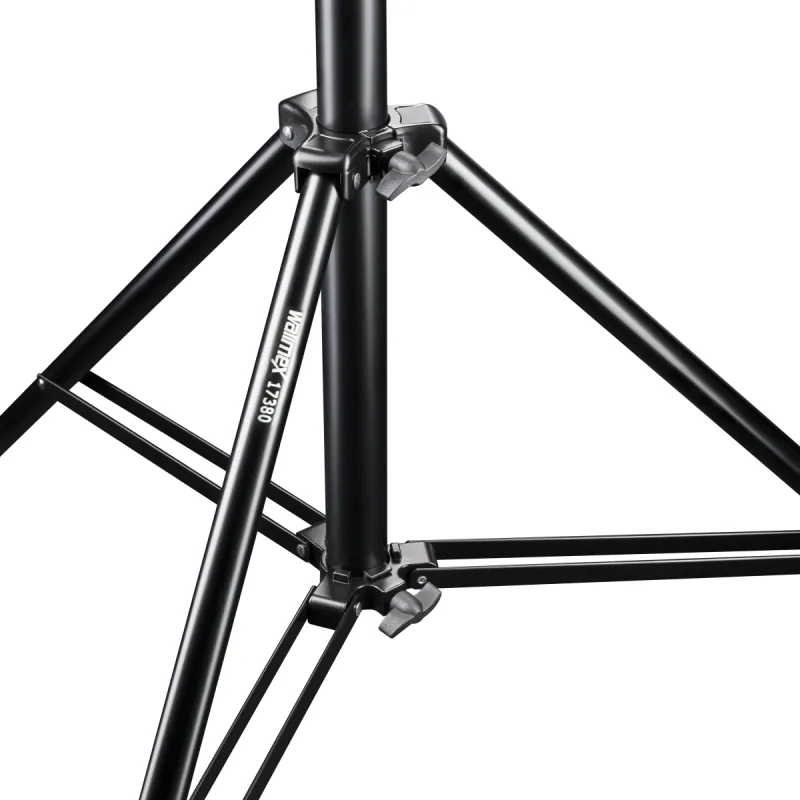 The walimex pro Lamp Tripod AIR is a high-quality solution for studio photographers. The well-built tripod is portable and can be used flexibly at a net weight of approx. 2,15kg and a transport length of approx. 120cm. On the tripod, you can use studio flashes or reflectors up to a weight of 8kg. The air cushioning is the special feature on this tripod, because it provides the necessary safety when lowering the individual elements. With the standard 5/8 inch spigot connection with a 1/4 inch thread the studio tripod is suited for all common studio lights and flashes.