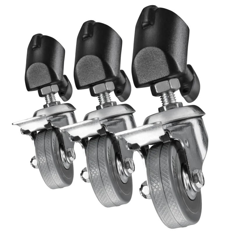 The three walimex tripod wheels Pro are ideally suitable for the use on wood as well as on carpet. After mounting on your tripod, it helps you to move your tripod with lighting without any problems.