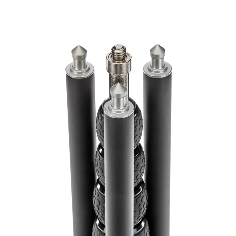 Luna поставлетс с резиновыми ножками, которые можно снть, чтобы открыть металлические шипы, идеально подходщие дл закреплени штатива на мгкой земле на улице.