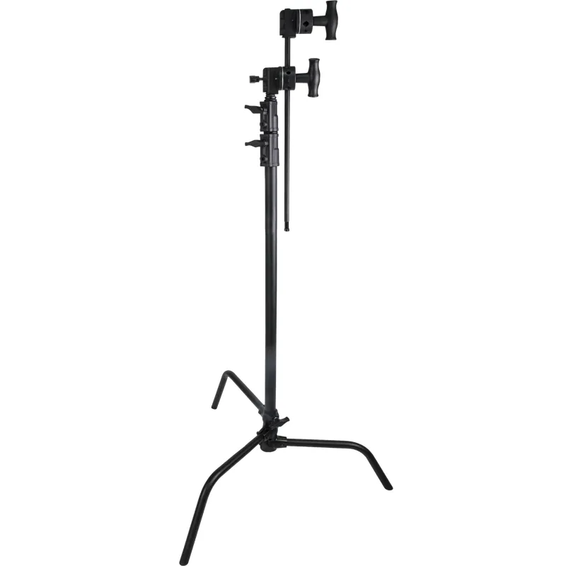 Стойка имеет две ноги, которые работают на пружинах и открываютс в фиксированных положених, в то врем как треть нога регулируетс по высоте. Ослабив фиксирующий винт, пользователь может перемещать ее вверх и вниз по основной секции подъемника. Это позволет одной ноге быть поднтой выше других, выравнива стойку на наклоне или неровной поверхности. Эта функци обеспечивает оптимальную поддержку дл ваших световых голов, отражателей и гобо.