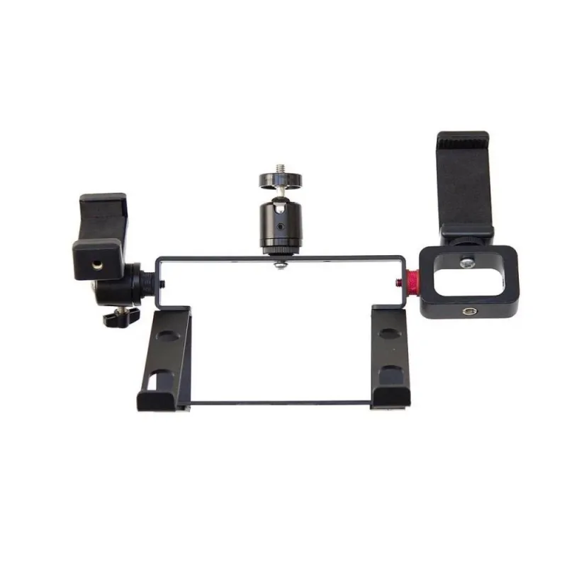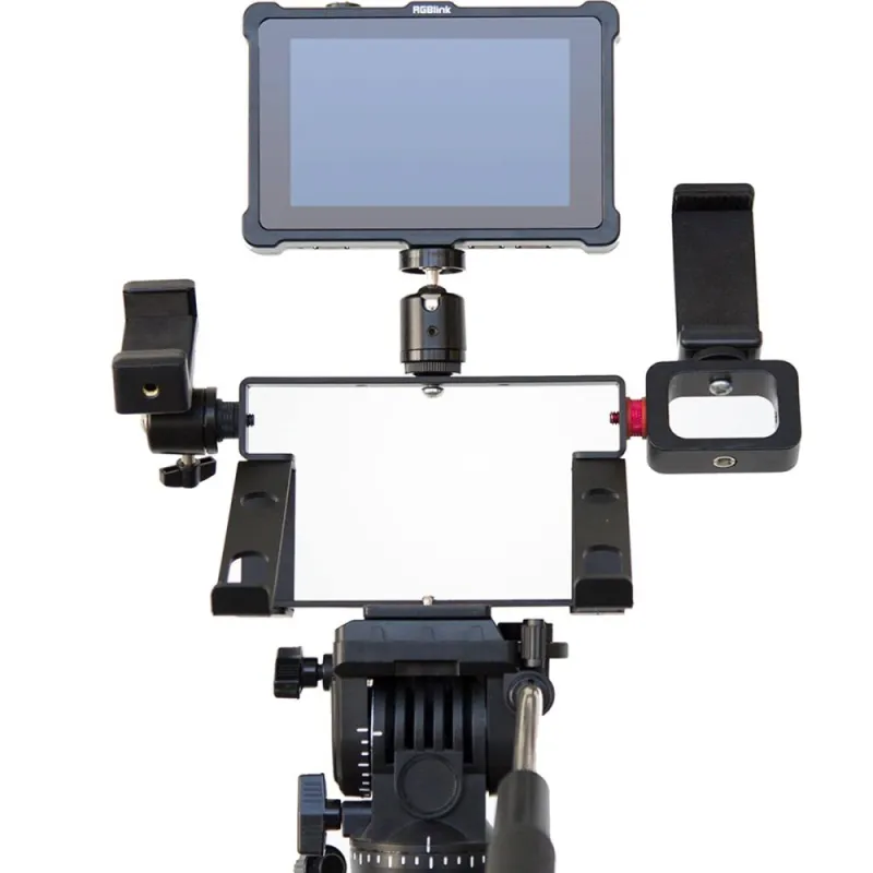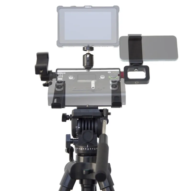 Кроме того, консоль можно установить на штатив с помощью резьбы -20. В комплект входит полный набор аксессуаров для крепления: три шаровые головки и три регулируемых кронштейна. Шаровые головки поддерживают 5 и 7 мониторов/рекордеров и микрофон, а кронштейны с регулируемым натяжением позволяют крепить такие аксессуары, как смартфоны или нано-роутеры. Расположение аксессуаров можно настроить для удобства, обеспечивая легкий доступ к кабелям HDMI, LAN, USB и питания.
