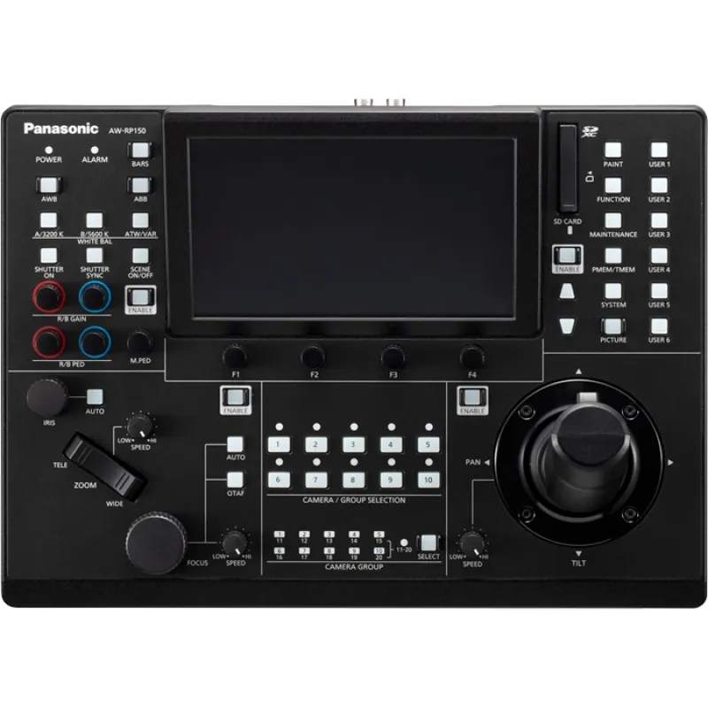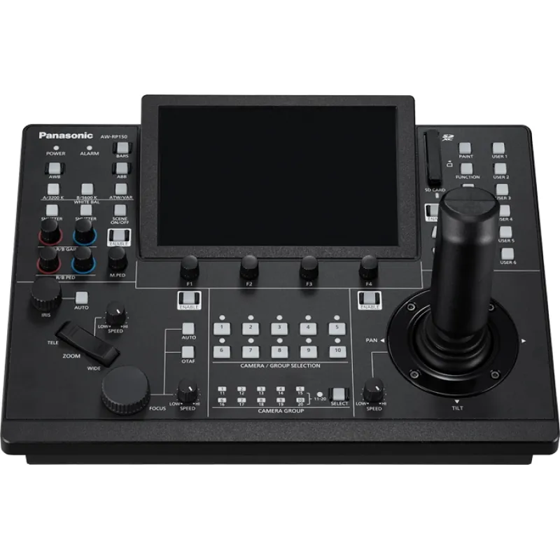 The AW-RP150 compliments Panasonic's comprehensive professional PTZ camera lineup. It has the same great functionality of the previous AW-RP120 and AW-RP50, and joins the lineup with significant improvements over those models, including a new one-hand operation joystick (controlling PTZ or Focus) and a large touch-panel LCD screen for monitoring and menu setting.