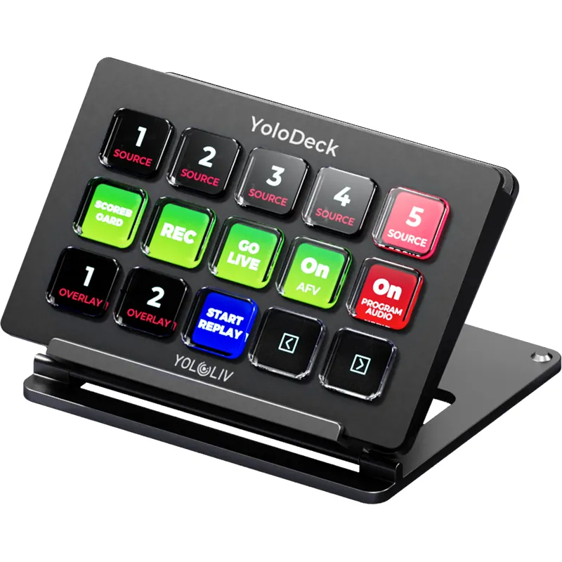15 настраиваемых ЖК-клавиш: Мгновенное управление различными функциями, такими как запуск/остановка потоков, переключение источников видео и добавление графики.