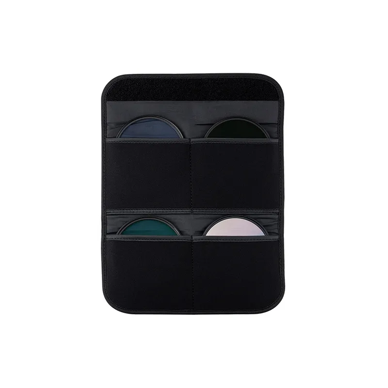 Складной чехол для фильтров серии JJC FP-K4 GRAY специально разработан для хранения фильтров. FP-K4S GRAY может вмещать 4 фильтра до 58 мм, а FP-K4L GRAY — 4 фильтра до 82 мм. Внешний вид мешочка для фильтра изготовлен из высококачественного полиэстера, прочного и долговечного. Каждый из фильтров, помещенных в этот мешочек, помещается в один из четырех эластичных карманов, и к ним можно легко получить доступ, открыв застежку на липучке.