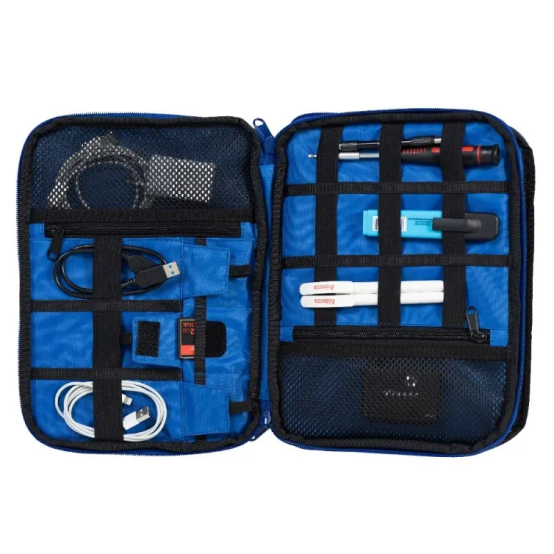 The soft padding makes sure you don’t have to worry about damaging or scratching the contents of this pouch. The mesh pockets and elastic straps keep all items in place and offer complete overview and easy access.