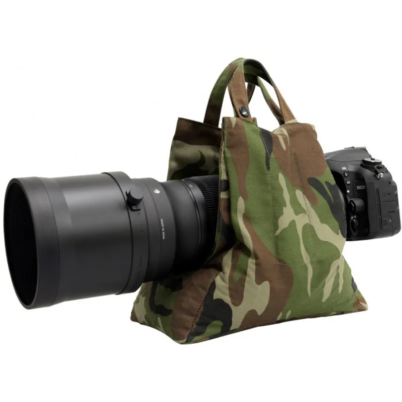 Такую сумку-мешок с наполнителем можно использовать по разному - например как поддержку для тяжелого объектива или как переноску для своей техники. Она обеспечивает надежное смягчение и играет роль своего рода стабилизатора.