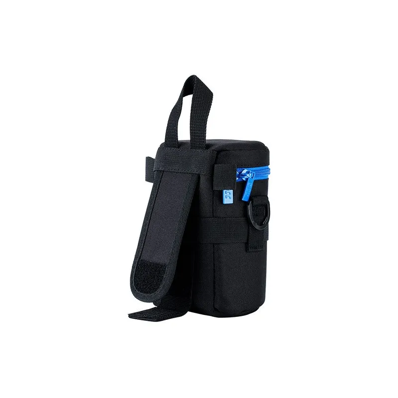 JJC Deluxe Lens Pouch is designed to carry a typical SLR lens. This pouch features heavy-duty polyester construction with a foam cushion interior. It provides great protection and shock absorption for your lens. Besides, its exterior material is water-resistant, which can protect your lens from rain and moisture. It has deep blue two way zipper with a mesh accessory pocket inside the lid. The two zipper sliders are designed with small loops, thus you can lock them together with a small lock for security. You can put the small accessory, such as lens cap or remote controller, into the inside pocket. Features 4 carrying options: 2 D-rings with a strap to be used as a shoulder strap, 2 webbed eyelet loops for a shoulder strap, rear double touch belt loop for use on waist belt and a grab handle on the top for convenience. In addition, the narrowed rear double touch belt loop also fits Lowepro belt. The deep blue zipper coordinate with the JJC logo, which makes the pouch fashionable. This series of lens pouches is available in 7 sizes to fit a wide variety of lenses.